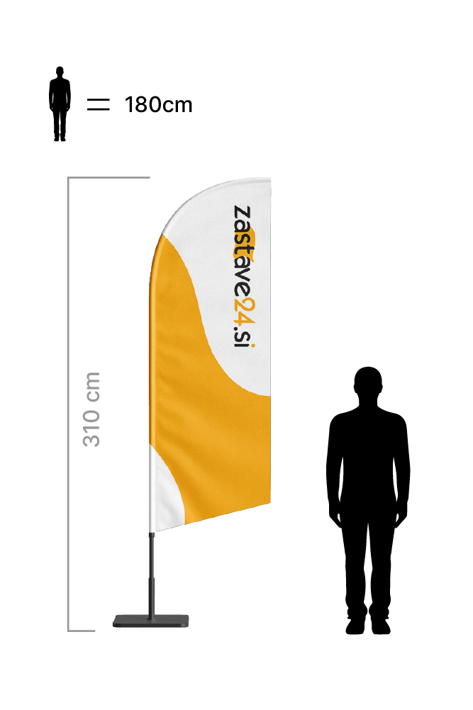 Beach flag zastava je izjemno učinkovito marketinško orodje za promocijo na različnih dogodkih, sejmih, športnih prireditvah, predstavitvah,… Konstrukcija je v celoti izdelana iz zelo trpežnih fiberglas cevi in se sestavi v dveh minutah. Zaradi preproste postavitve in lahke prenosljivosti je idealna za uporabo na različnih lokacijah. Lahko se pere v pralnem stroju do 60°C.