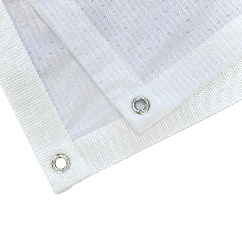 Tekstilni transparent je izdelan iz kakovostnega, gosto tkanega blaga iz 100 % poliestra, ki zagotavlja visoko obstojnost v vseh vremenskih pogojih. Material je lahek, odporen proti mečkanju in primeren za notranjo ter zunanjo uporabo.